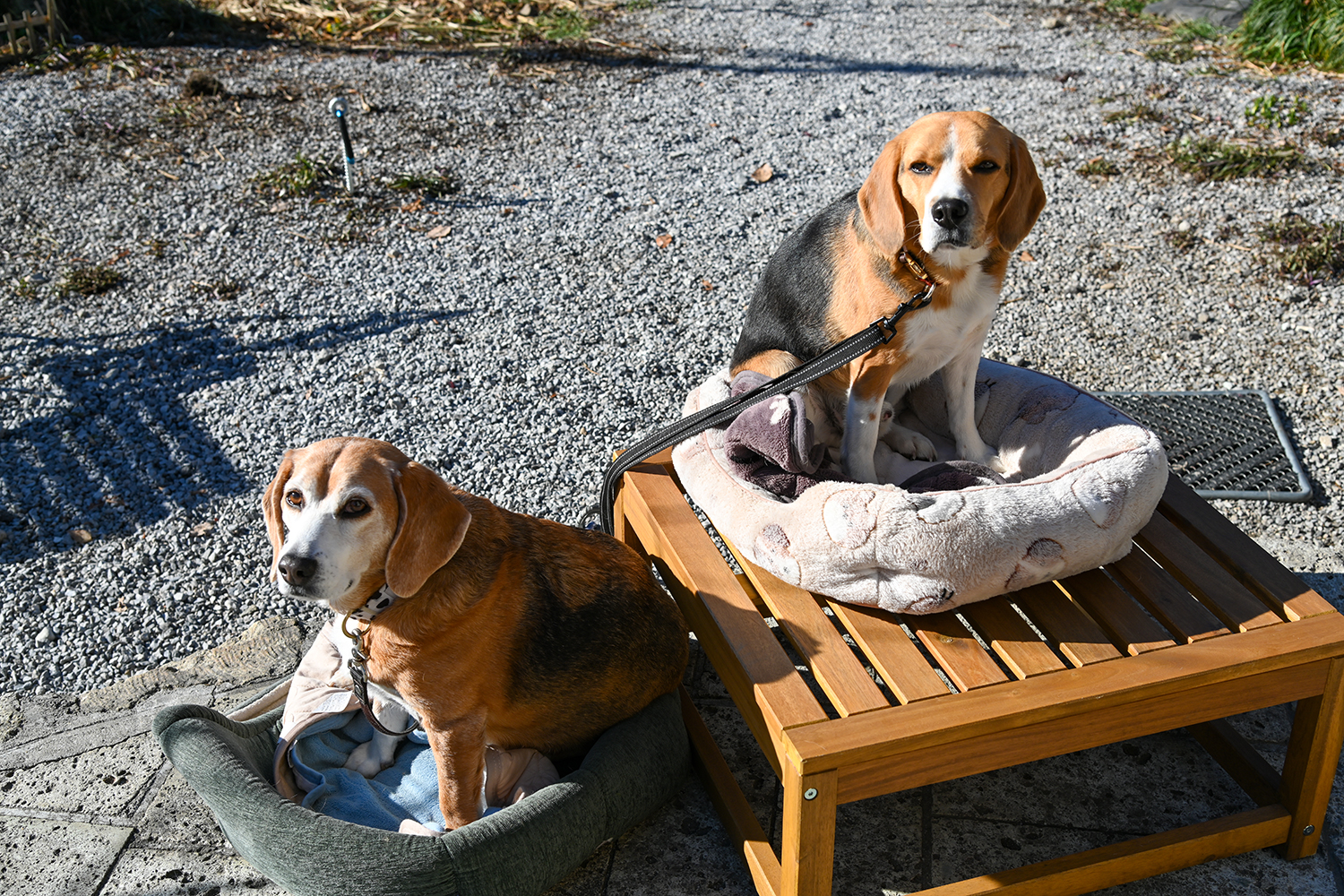 白・黒・茶色の“ビーグルカラー”を基調とした温かな雰囲気が、里山のひとときをやさしく包み込みます🏔️