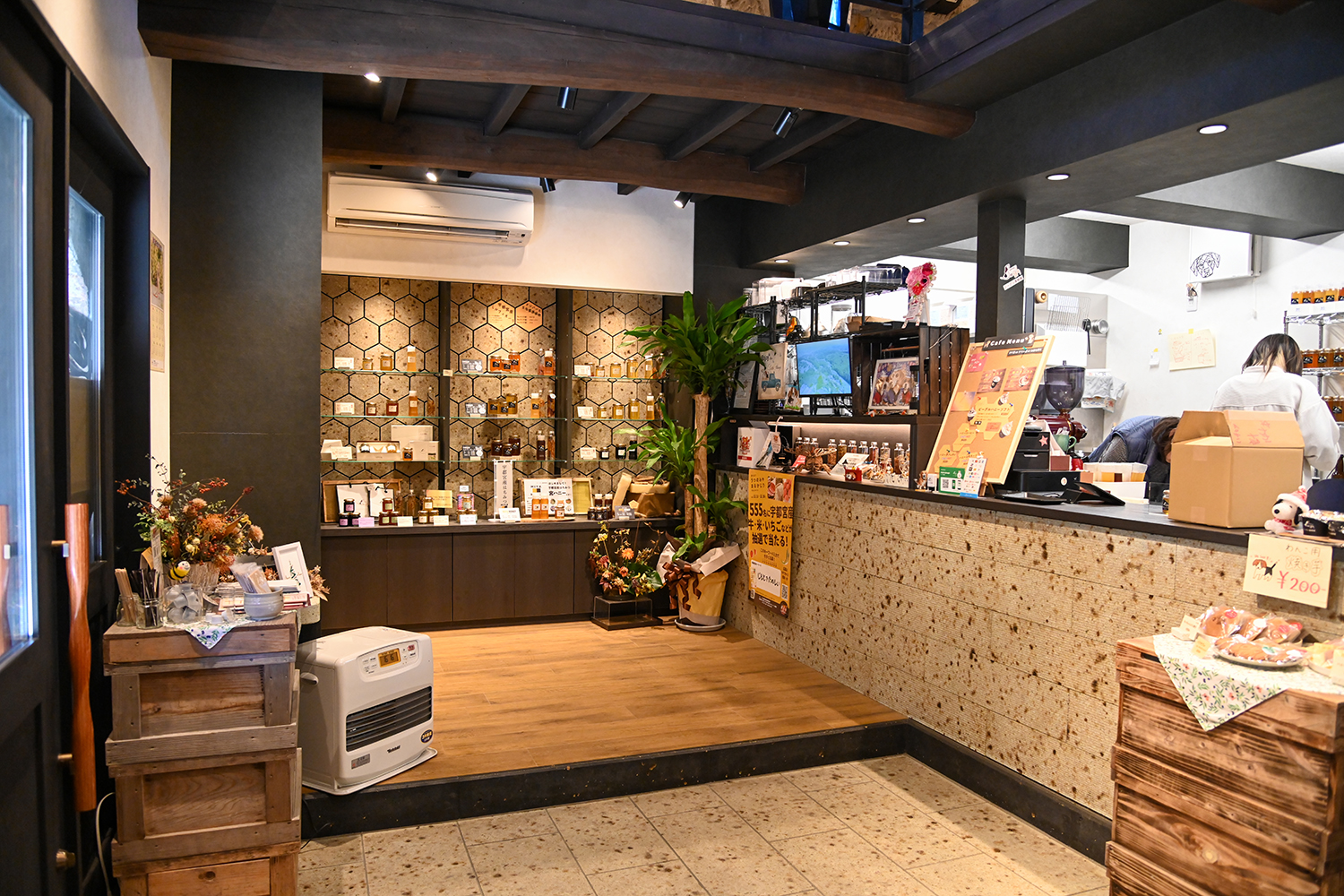 1階で販売している蜂蜜は、季節ごとに香りや色が異なり、どれを選ぶか迷ってしまうほど🛒