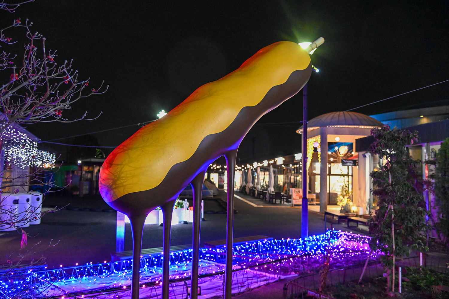 イルミネーション自体はしていないものの、周囲の光がほのかに映り込み、ソースがとろりと垂れるユニークな形がよく分かります✨