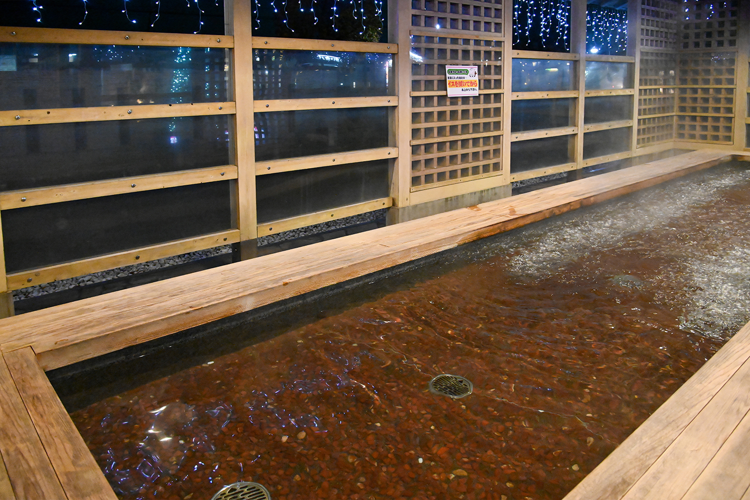 足湯の内部は、30人ほどが利用できる広さがあり、ゆったりと腰掛けられる造りになっています♨️