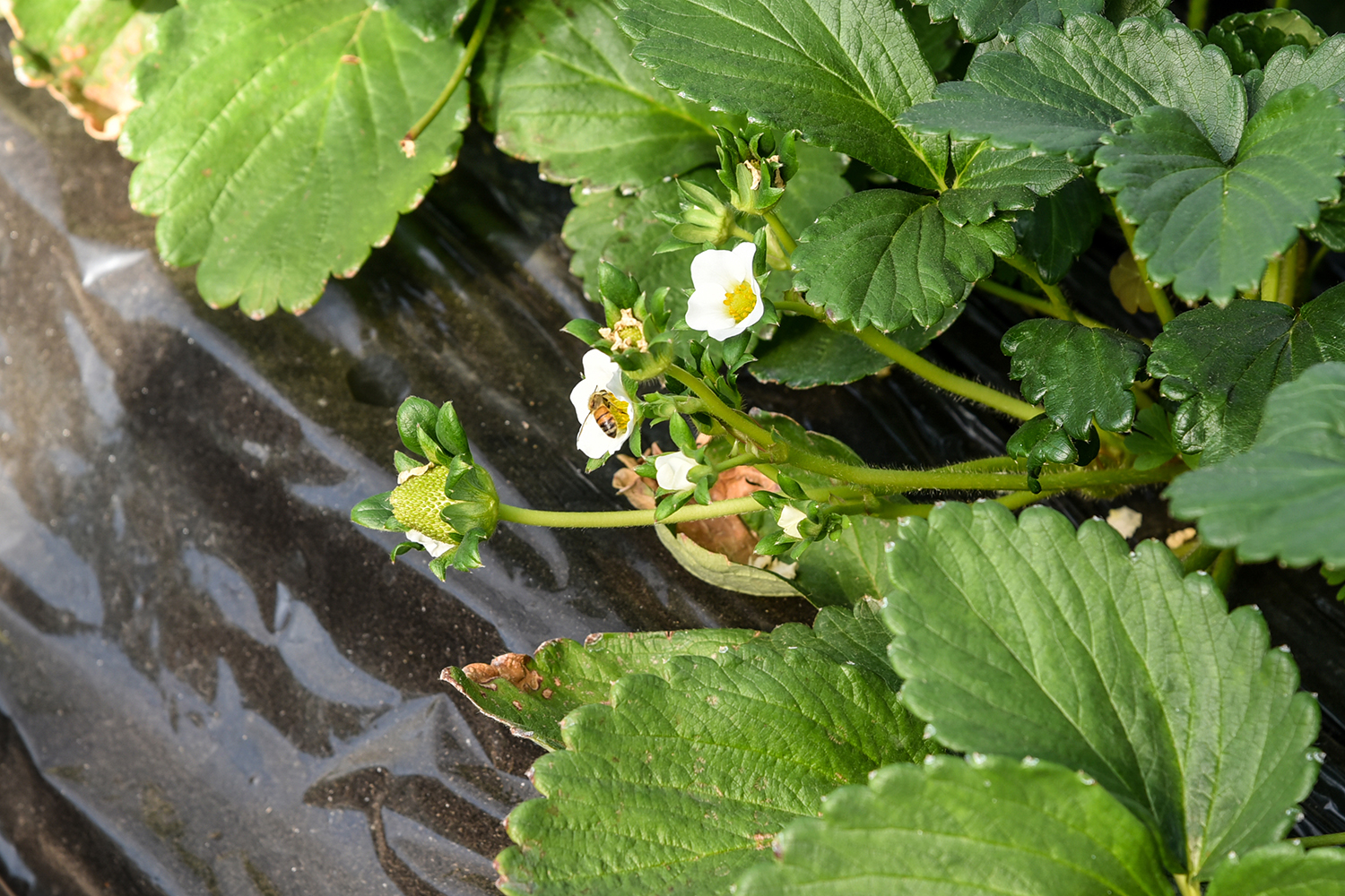 おいしいいちご作りにおいては、ミツバチがとても重要な役割を果たしています🐝