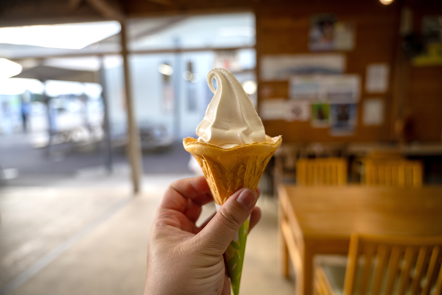 大笹牧場で育つブラウンスイス牛のミルクを使用しており、コクがありながら後味はすっきり🍦