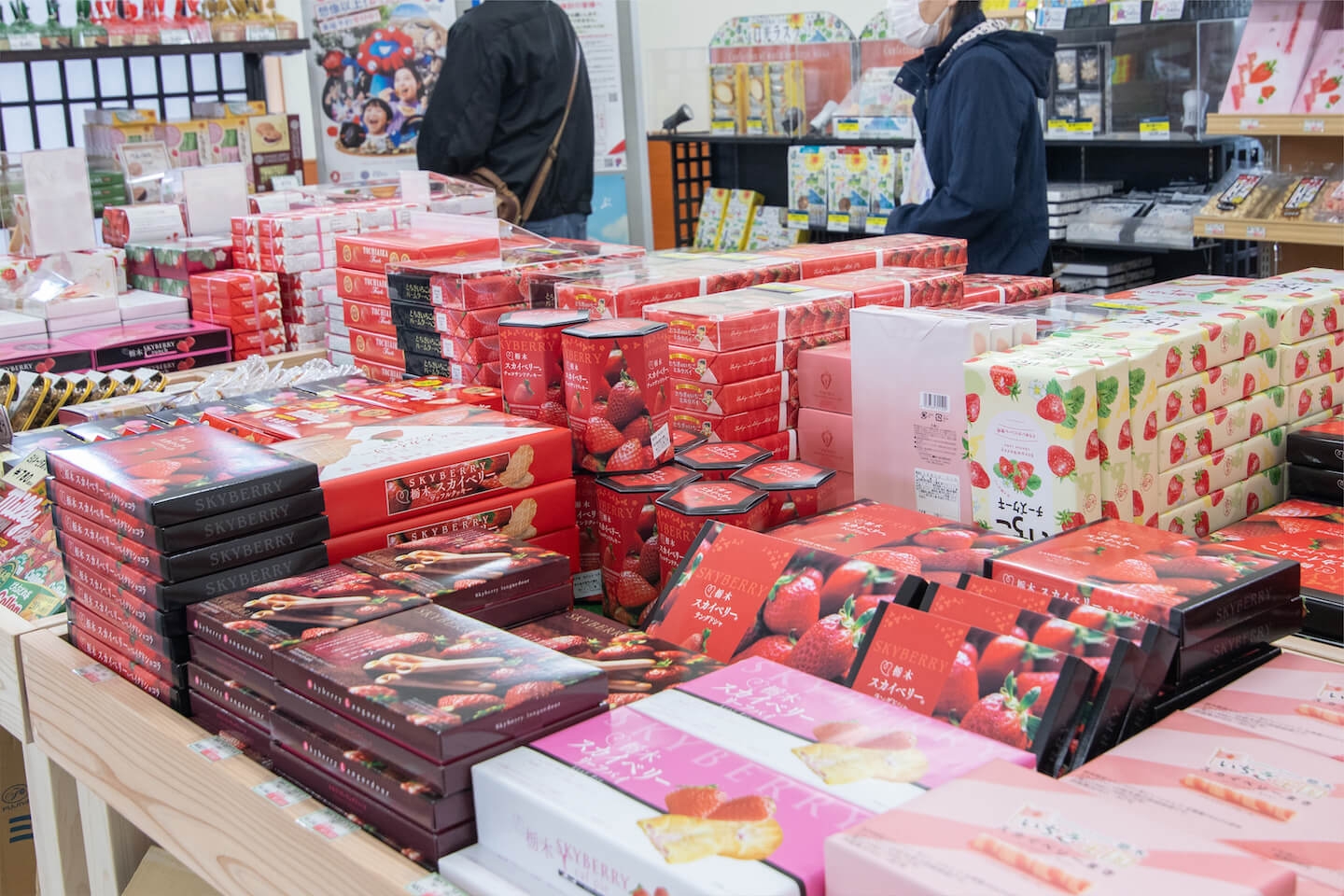 塩谷や栃木の名産品が並ぶおみやげコーナーでは、いちごを使用したお土産なども人気🛍🎁