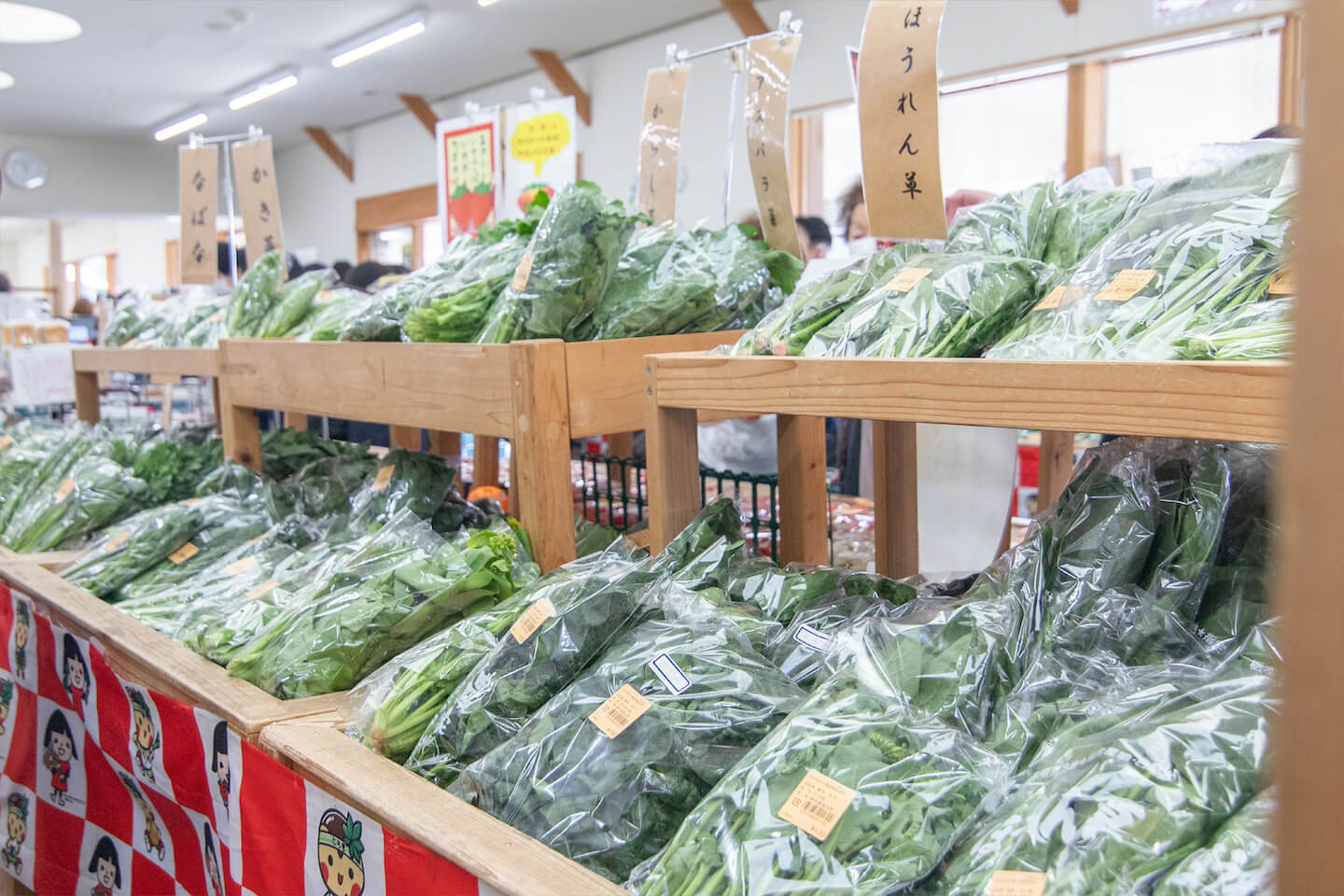 道の駅の中心にある直売所には、朝採れ野菜や果物がずらり🍅