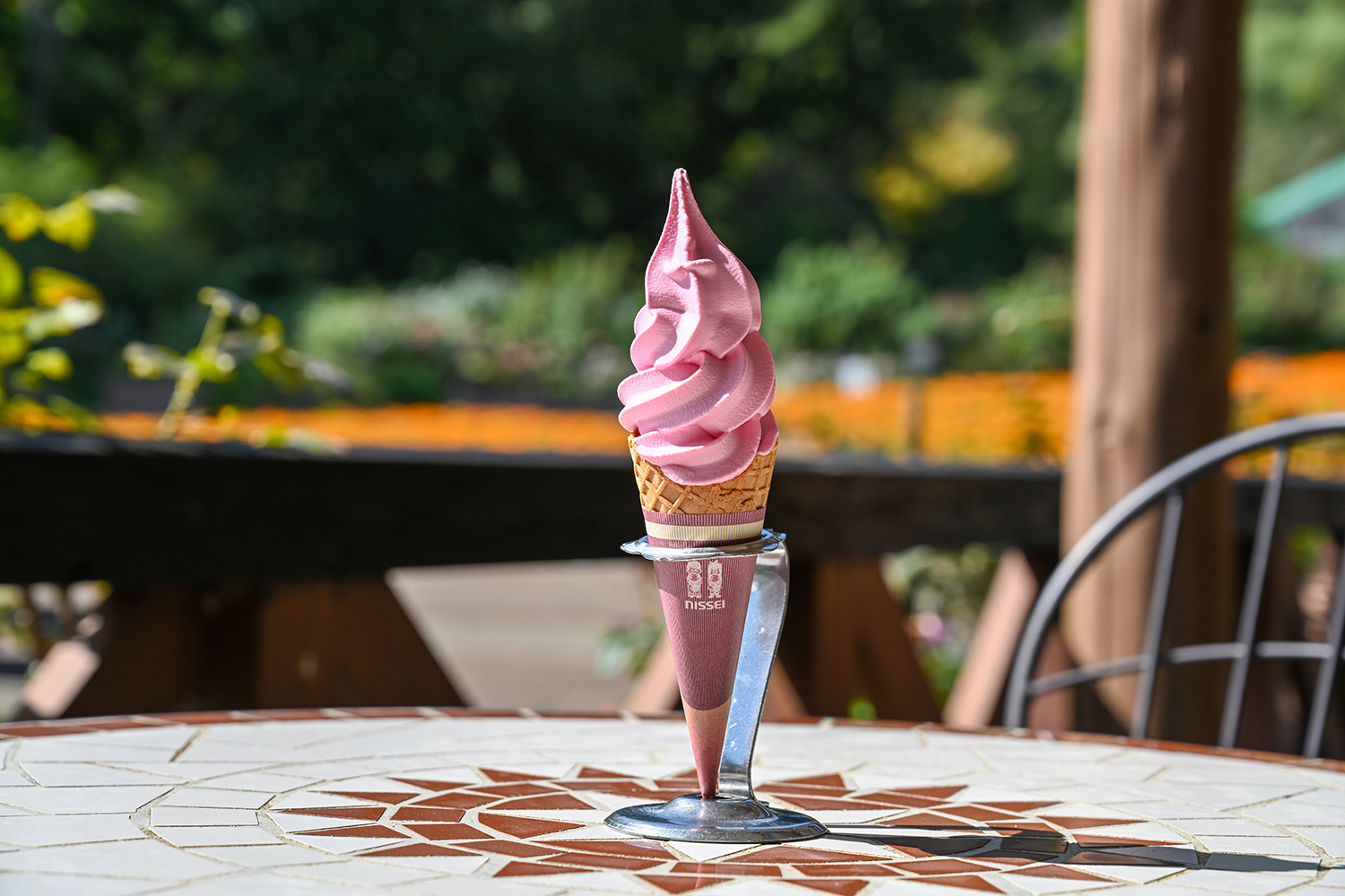 秋バラが見頃のこの時期だけの限定フレーバーなので散策の合間にぜひ味わってみてください🍦