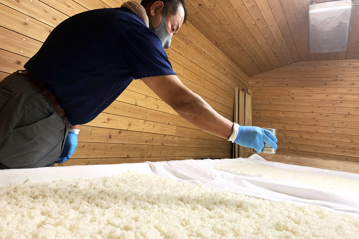 木の香りが漂う麹室で慎重に麹菌をふりかける蔵人の動きは、まるで儀式のよう。 “酒造りの心臓部”としての神聖さを感じさせます🕊️