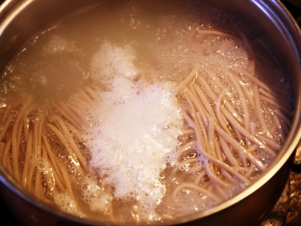 煮立つ鍋の中でぐるぐると回るそば。