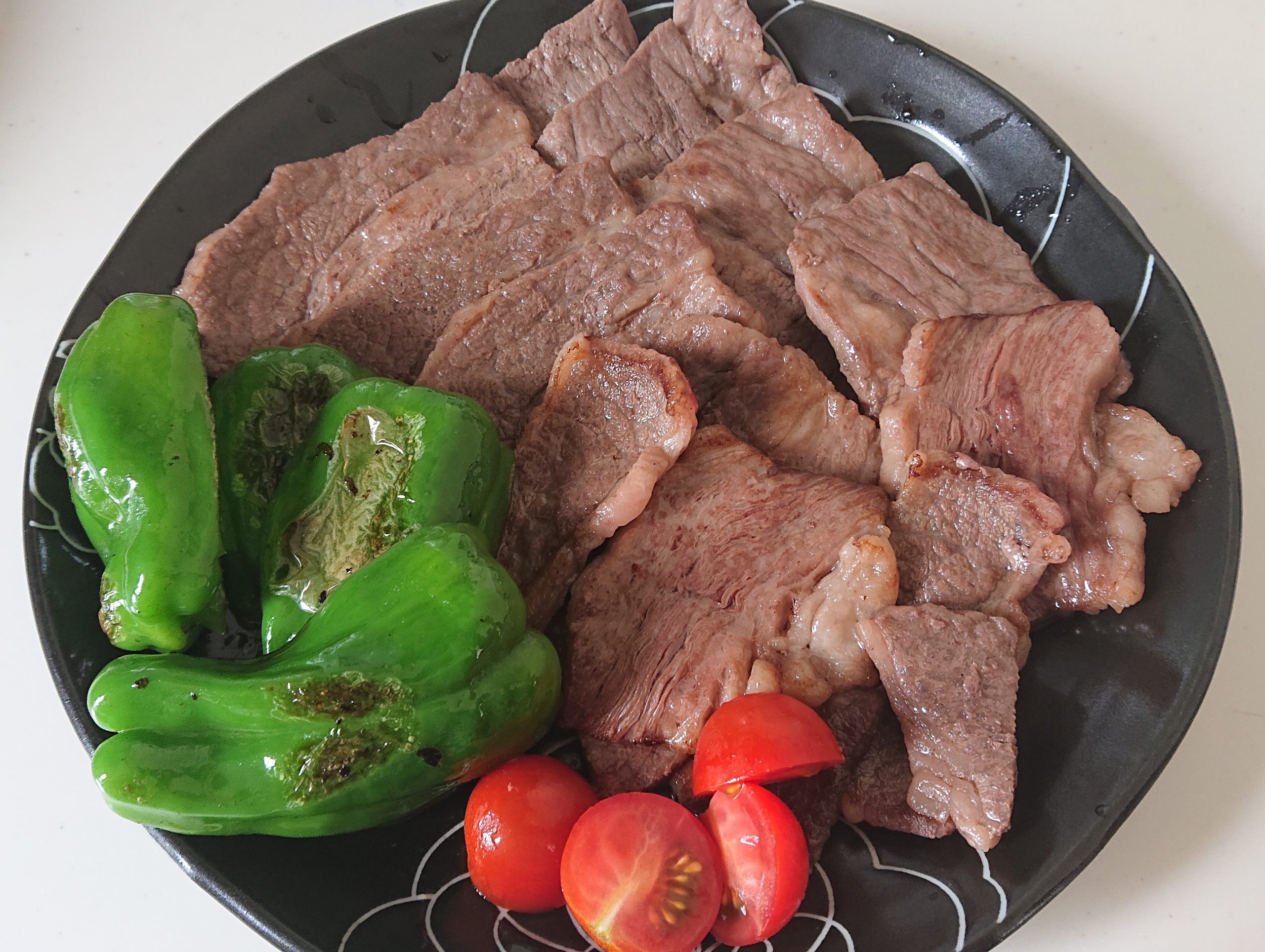 思い切って、焼きました。食欲をそそる焼き肉の匂い。
